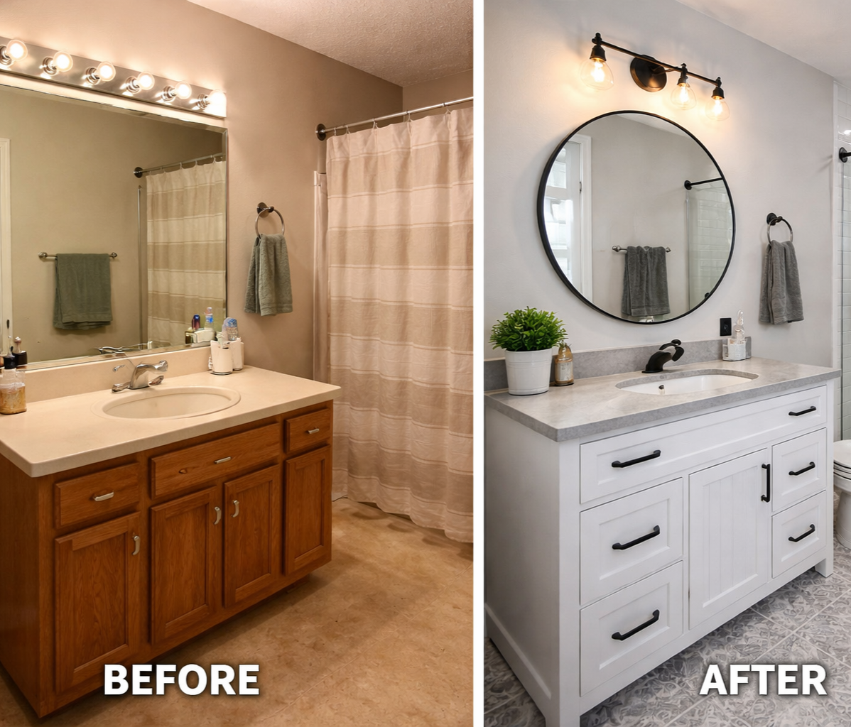 Tile & shower surrounds, vanity & fixture replacement, tub-to-shower conversions, flooring, lighting, full bathroom renovations